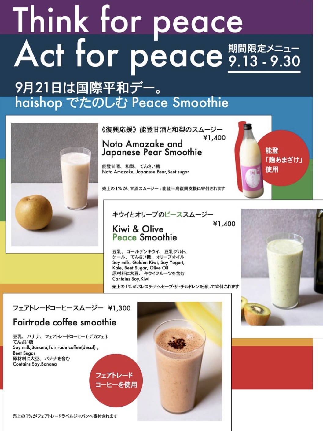 ・”平和を考えるきっかけ” のために作った限定スムージー