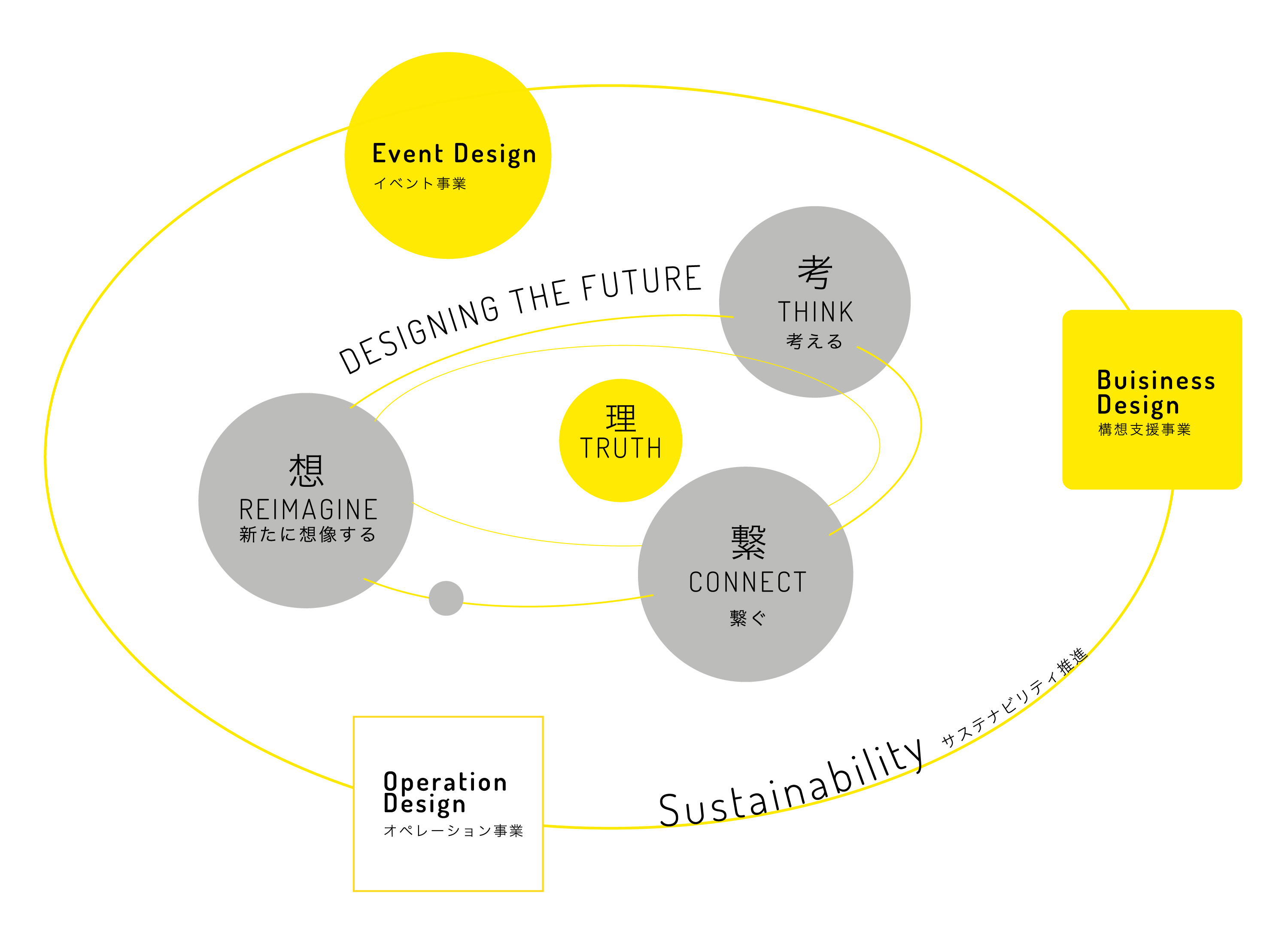 わたしたちは、『ひと』と『地球』の未来を描くことをミッションに掲げ、構想支援事業・イベント事業・オペレーション事業を通して、サステナビリティに配慮した心躍るような製品やサービス、空間を創造しています。
